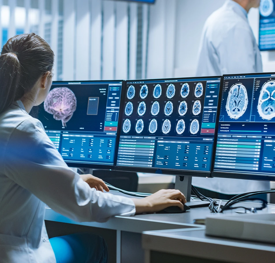 Machine learning algorithms analyze medical images and lab results. Early detection and accurate predictions support personalized treatment plans.